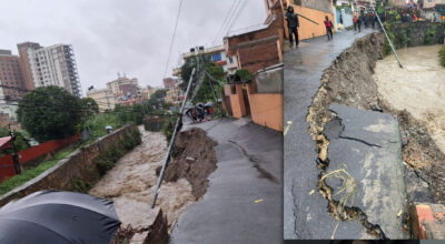 काठमाडौँकाे सोल्टीमोडमा सडक भासियो
