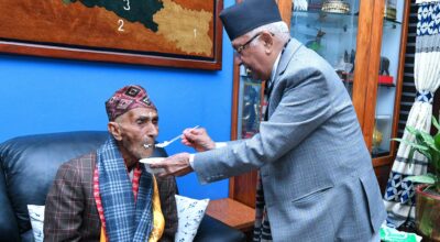 ७२ वर्षीय अध्यक्ष ओलीले ९५ वर्षका बुबा मोहनप्रसाद ओलीको जन्मदिन यसरी मनाउनुभयो (तस्विरहरु)