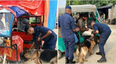 पूर्वी नाकाको चेकजाँचमा तालिम प्राप्त कुकुर