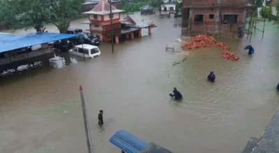 आधा घण्टाको वर्षाले जलेश्वर जलमग्न