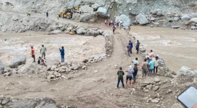 पाँचथरको हेवाखोलामा अस्थायी ‘डाइभर्सन’ राखेपछि खुल्यो मेची राजमार्ग