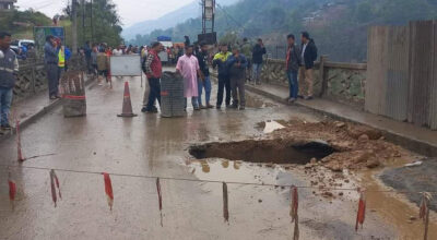 पुल भासिएपछि पृथ्वीराजमार्गमा सवारी आवागमन अवरुद्घ
