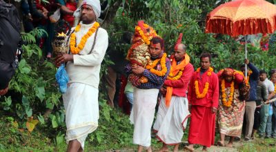 धादिङमा अनौठो जात्राः तामझामसित माइत झरिन् त्रिपुरासुन्दरी