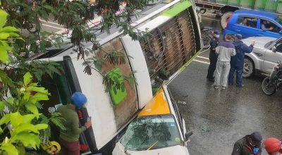 ग्वार्कोमा ट्क्सीमाथि बस पल्टियो, तीन जना घाइते