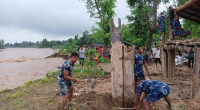 कञ्चनपुरमा चौधर नदीको बाढी बस्तीमा