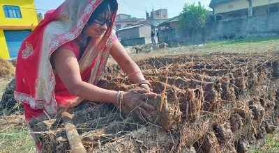 इन्धनका लागि ‘गुइँठा’ जोहो गर्दै महोत्तरीका गृहिणी