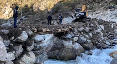 काठेपुलको कहरः जिम्मा लिएर ठेकेदार गायब, गाउँले बटुलेर नदीमाथि काठको फड्के