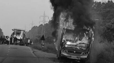रौतहटमा गुडिरहेको यात्रुवाहक बसमा आगलागी